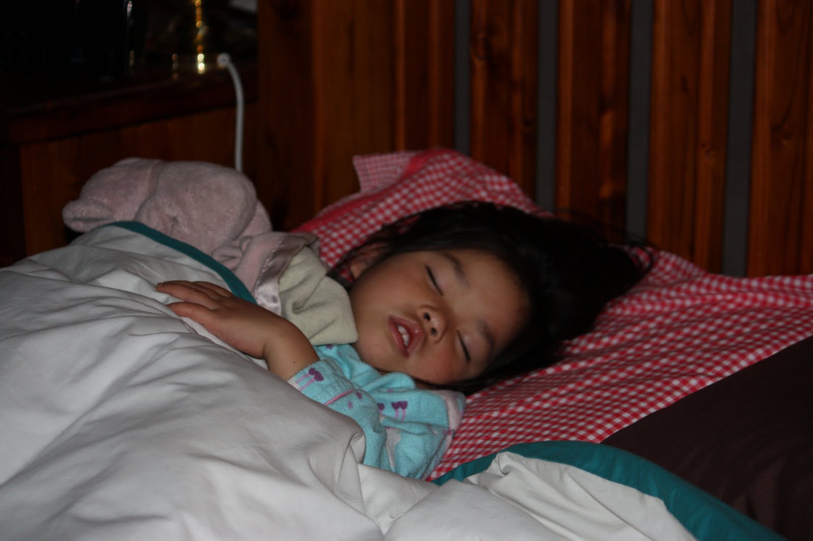 The morning started with my sleepy girl in OUR bed!